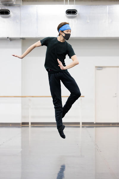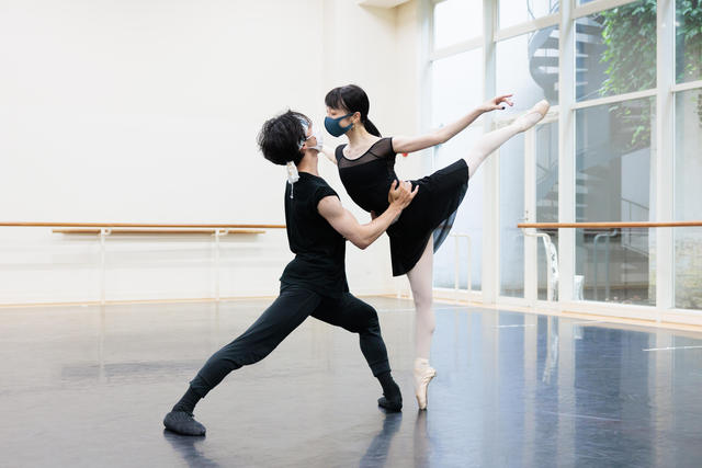 元モーリス・ベジャール・バレエ団の小林十市氏を指導者として招き、9年ぶりの上演に取り組む『火の鳥』。パルチザンを率いるリーダー・火の鳥の闘争、その不屈の精神を力強く描くバレエですが、タイトルロールのソロのリハーサルは、まさに”熱血指導”の様相。この役に初挑戦する池本祥真、大塚卓は、次々と要求される高度な課題に取り組んでいます。