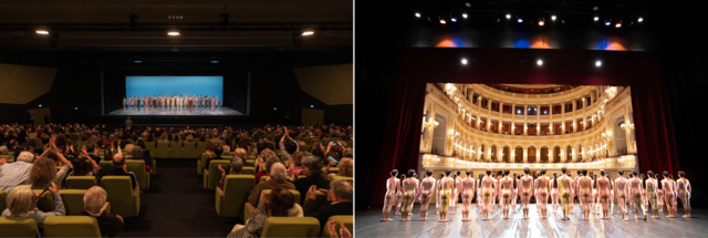 東京バレエ団のダンサーたちのテクニックと一致性は非の打ち所がない。肉体のマグマ(混合した感情や情熱)、繊維状にも見える裸体、何世代にも渡る生来の体型であろうか、50人もの体が絶え間なく動くのだが、それはまるで渦を巻く物体のように幾何学的形状や大きさを構成したり解体したりするのだ。初日からペトゥルツェッリ劇場の多くの客席を埋めた観客は日本のバレエ団の公演に盛大なる拍手を送った。