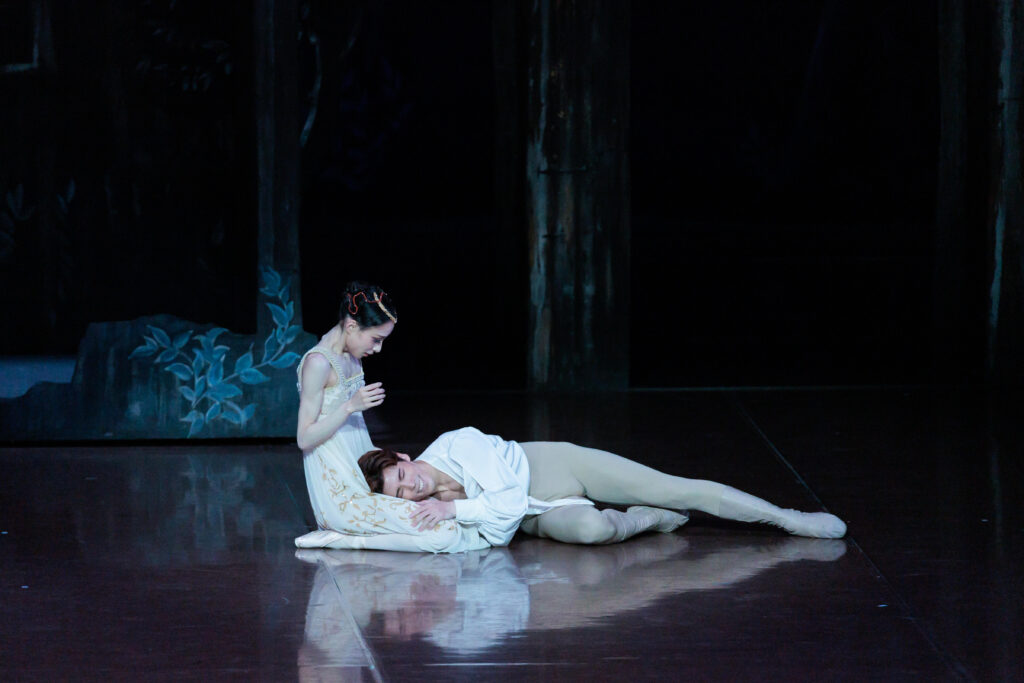 そこから始まる約8分間のパ・ド・ドゥのなかで、年上のロミオはどんどん少年になっていき、年下のジュリエットは大人の女性の表情を見せ始める。印象的なのは後半、ジュリエットがロミオを膝枕するところ。少し躊躇いながら、でも愛おしそうにロミオの髪をそっと撫でるジュリエットに、胸がいっぱいになる。